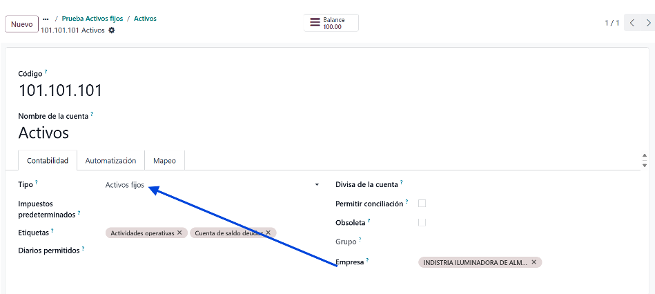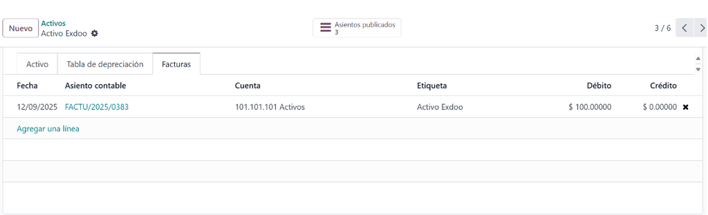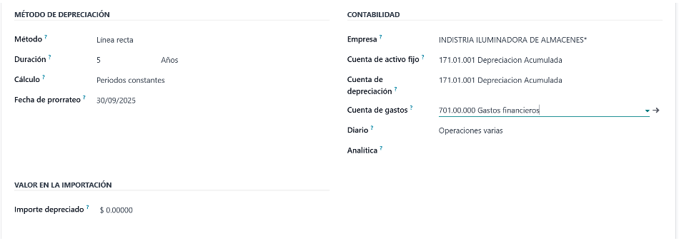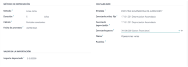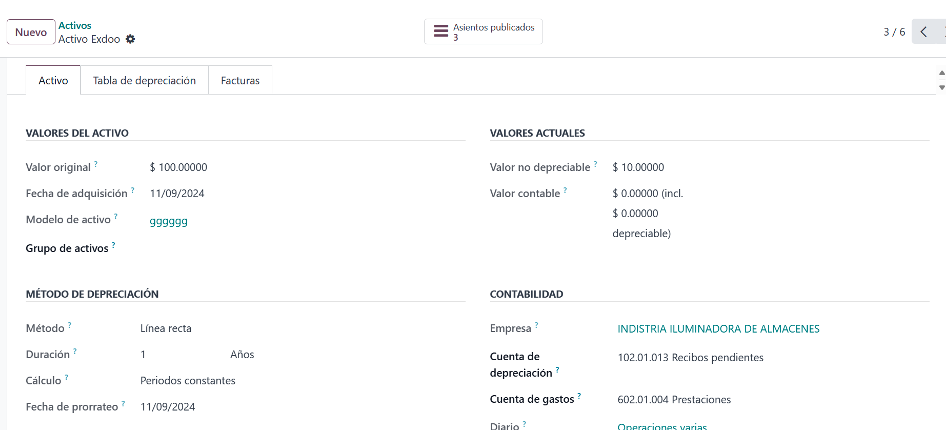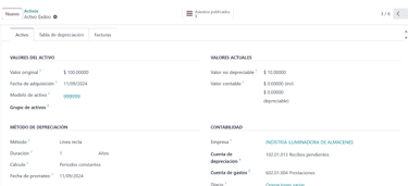 📍 Ruta: Contabilidad > Activos > [Seleccionar activo]