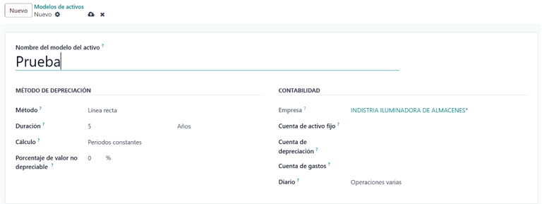 📍 Ruta: Contabilidad > Configuración > Modelos de activos