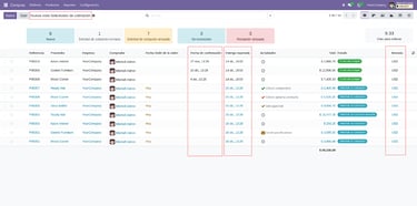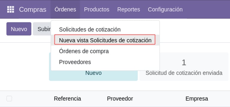 Pero regresando a nuestra vista original, Solicitudes de cotización, notamos que esta nueva columna no está.