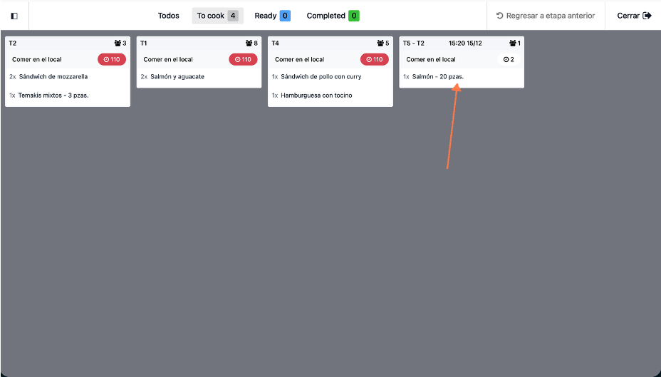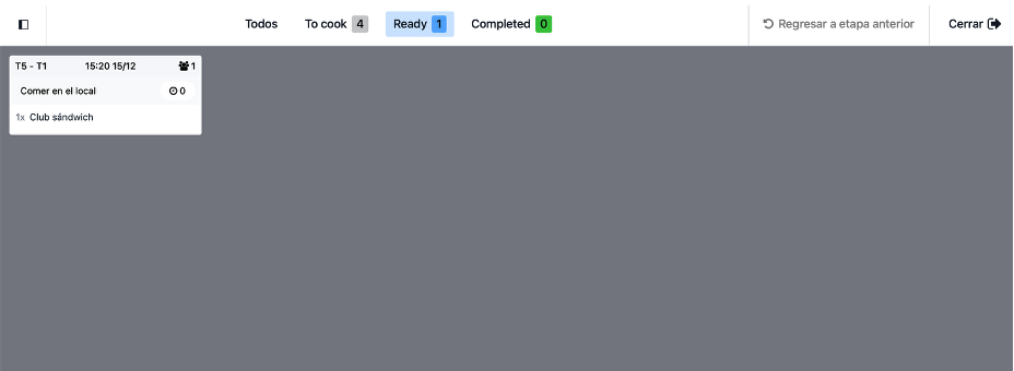 Al darle, en la pantalla de cocina nos mostrará el nuevo pedido: