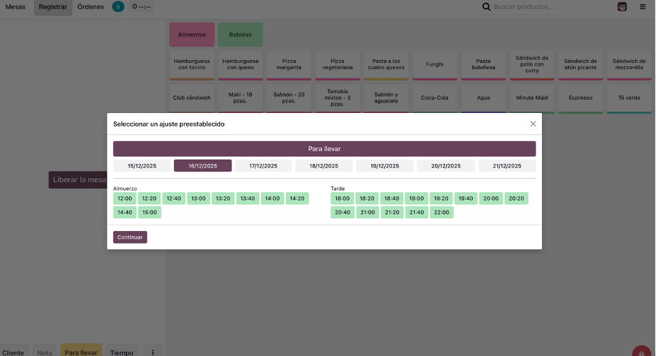 Para esto, en la vista del pedido hay un botón de “Tiempo”; esto nos colocará un nuevo apartado en las líneas del pedido: