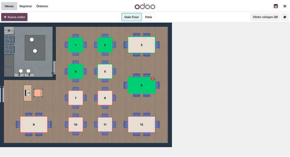 En esta nueva versión, si vamos a nuestro punto de venta de restaurante, podemos visualizar las mesas de nuestro lugar: