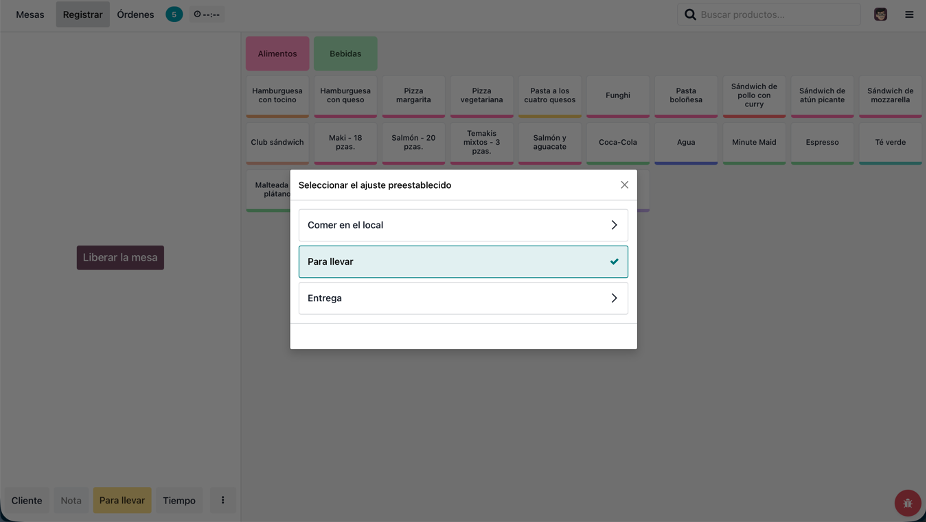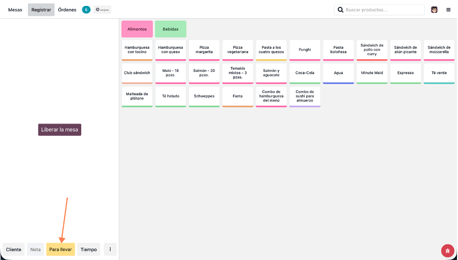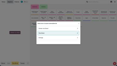 Y al momento que le damos en “Ir”, nos manda a la vista de la mesa para poder ordenar: