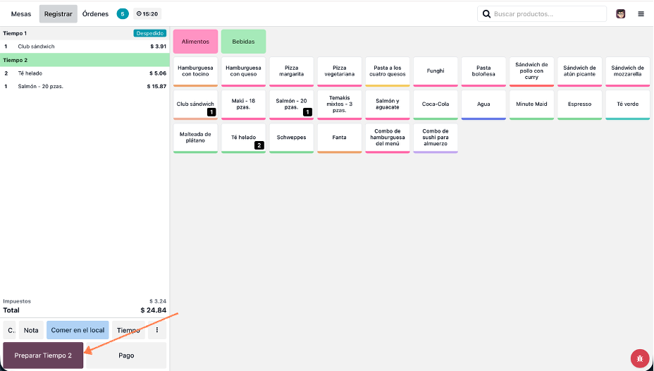 Esto es, por ejemplo, cuando un cliente te pide que en su primer tiempo quiere comer un sándwich y en el segundo tiempo un postre.