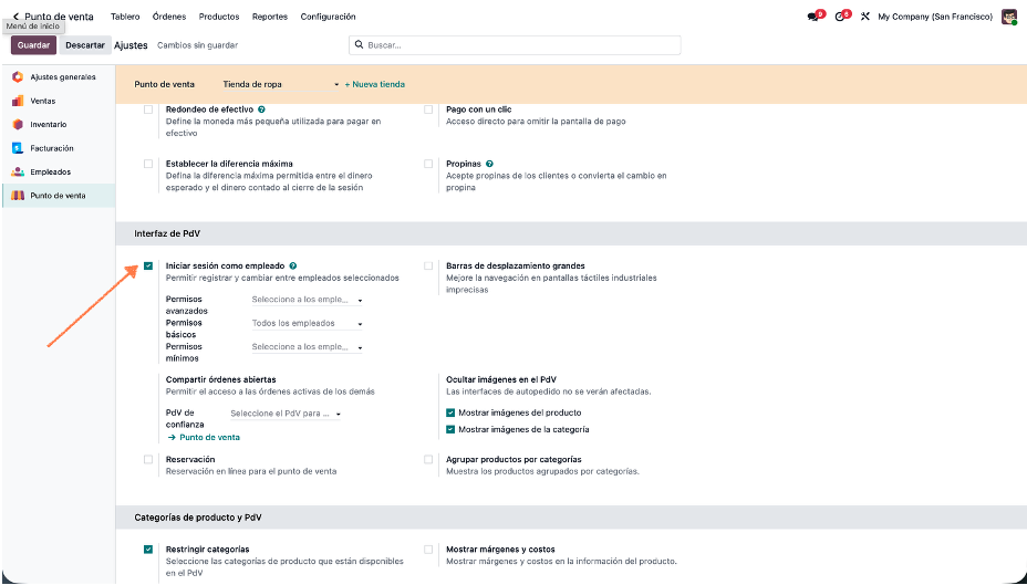 Para esto nos vamos a configuración a “Inicio de sesión como empleado”: