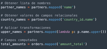 - Mapear valores (mapped): Extrae valores de campos o aplica funciones.