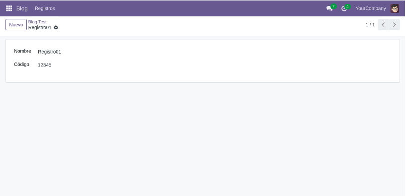 Por lo que visualizamos un registro desde la vista formulario de la siguiente manera: