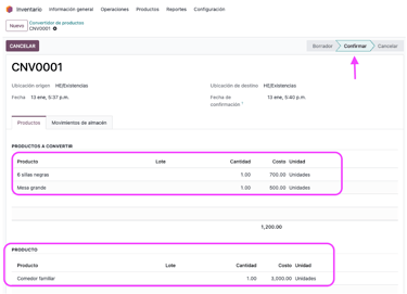 La finalidad de este módulo es permitir que se tomen productos de un almacén y entren otros al mismo o a otro almacén, a elegir; a su vez, tú mismo conviertas según la necesidad.