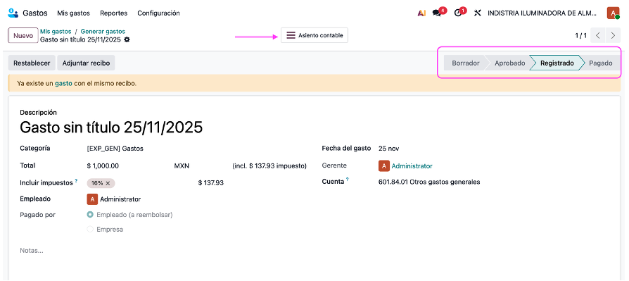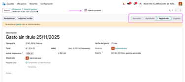 8. Una vez que se pagué, cambiará de estado registrado a pagado, y es así como se cumple el flujo de un gasto, se comprueba, valida, se registra y se paga.