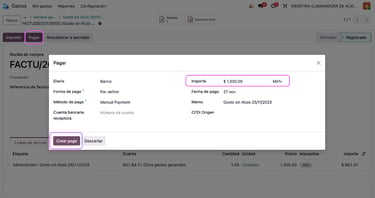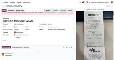 Recuerda que los gastos los debe documentar un usuario de Odoo.