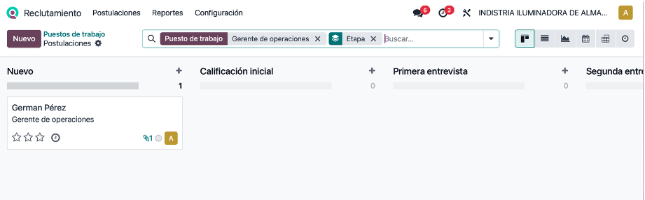 Cuando se mandan los datos, en Odoo les aparecerá que hay una nueva postulante para su seguimiento.