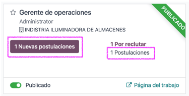 Una vez que le damos en crear, nos aparece un nuevo panel, donde vamos a llevar el control y seguimiento de nuestras postulaciones.