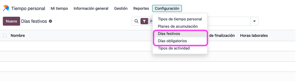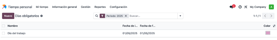 En el menú de “Días obligatorios” son los días establecidos en la ley.