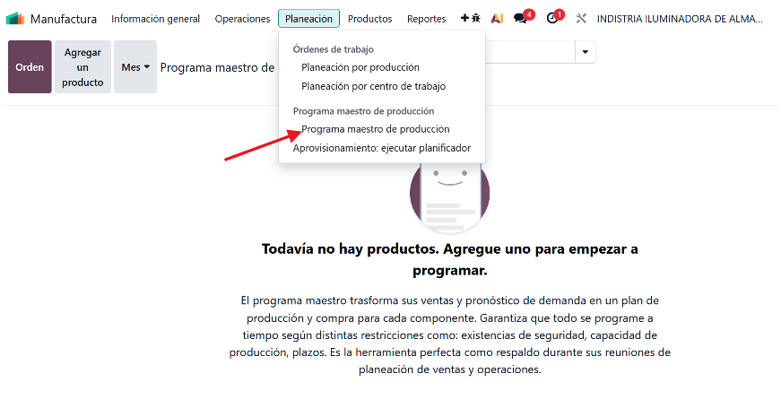Odoo 19 incluye herramientas para planificar la producción a distintos niveles: