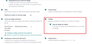 Workcenter control / Shop Floor: activar si vas a usar tablets o terminales en el taller para reportar tiempos y controles.