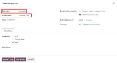 Para convertir operaciones en pasos medibles, usa Work Centers.