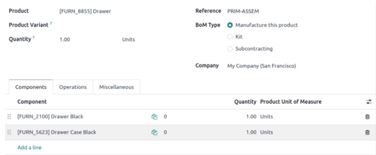 Tipo de BoM: Manufacture this product, kit, subcontracting, etc.