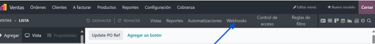 Odoo genera una URL secreta; habilita Log Calls para depuración.