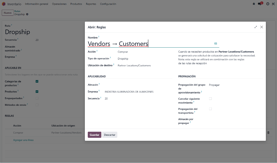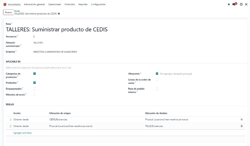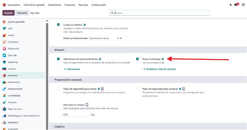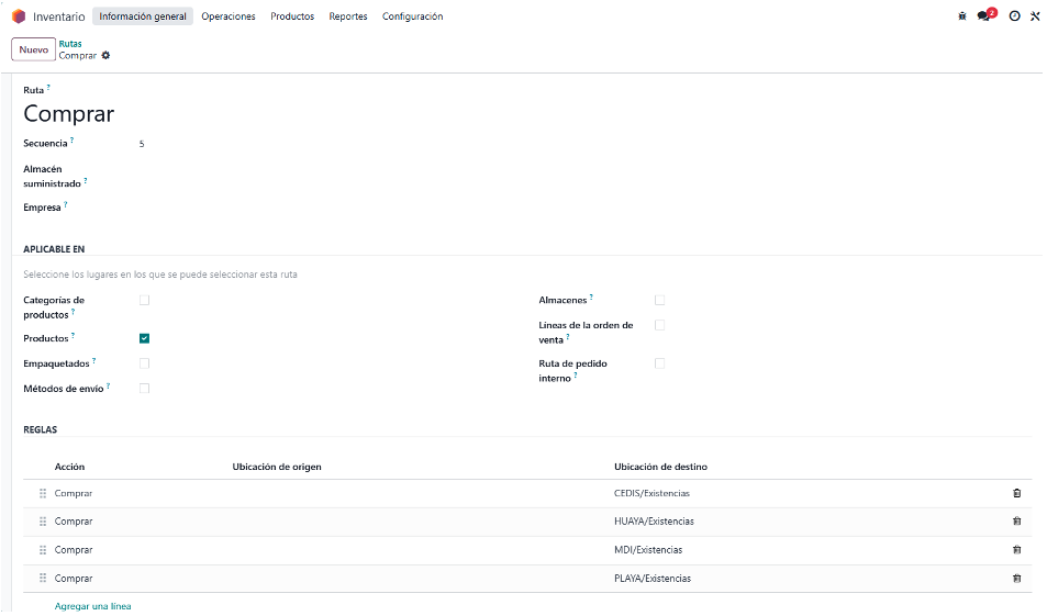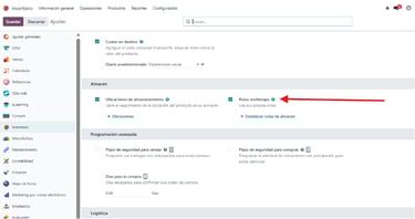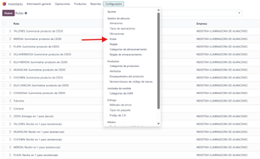 2. Activación de rutas de inventario