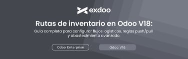Descubre cómo configurar y utilizar las Rutas de Inventario en Odoo 18: rutas estándar y personalizadas, reglas push y pull, abastecimiento automático, MTO, dropshipping, multialmacén y control de movimientos. Manual detallado para nuevos usuarios que buscan dominar la logística en Odoo.