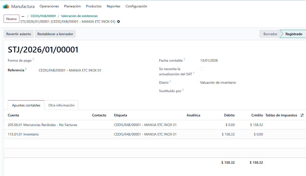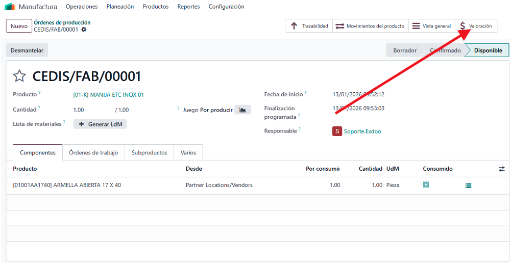 8. Valoración de inventario en Manufactura (MRP)
