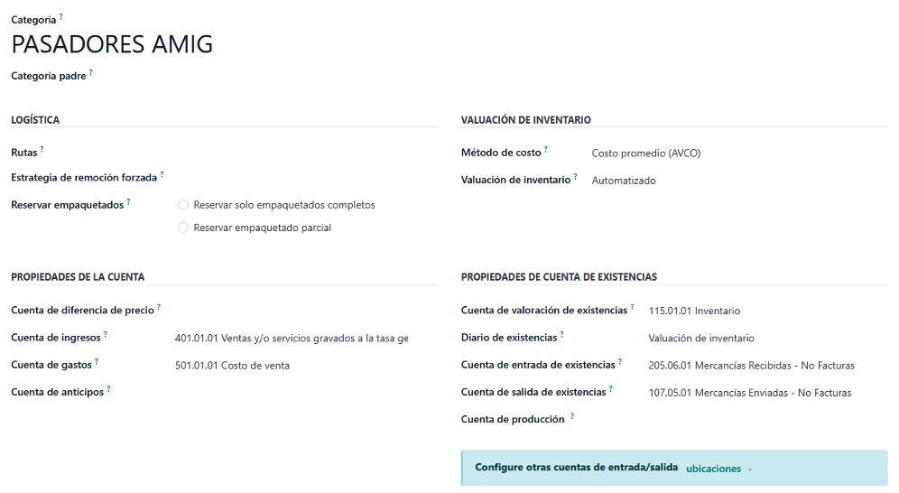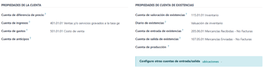 Si estas opciones no están correctamente configuradas, Odoo solo llevará control de cantidades, pero no de valores financieros.