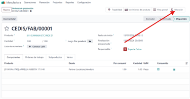 Los componentes consumidos generan salidas de inventario.